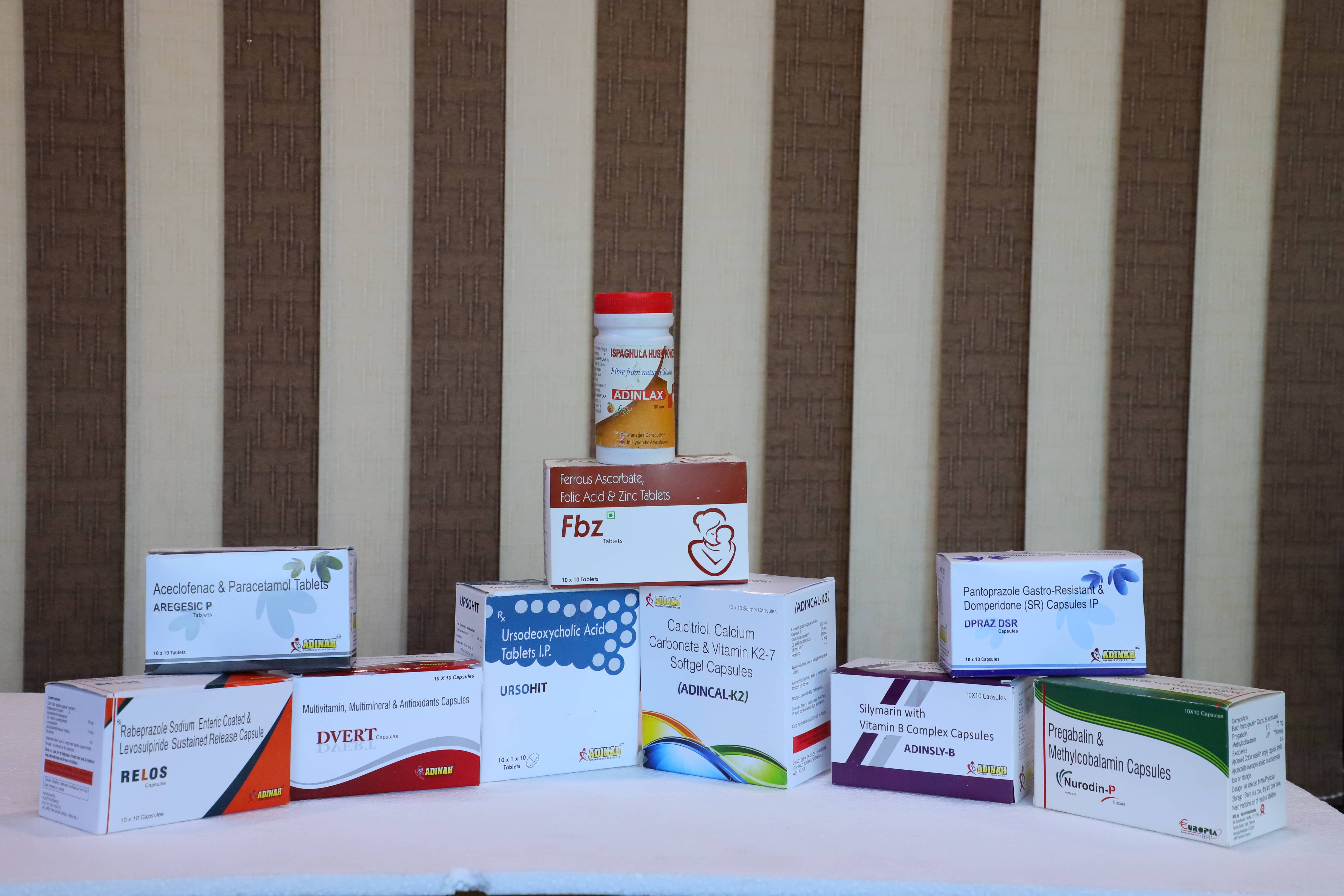 Adinah Pharmaceuticals Pvt Ltd started marketing its product line in the year 2014, with more than sixty products in the basket. The product spectrum is wide and varied from specialised medicine to OTC products line.
